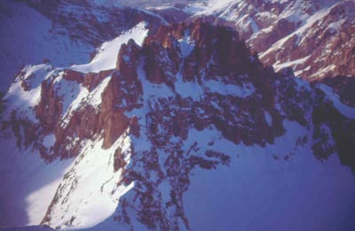 Havada ince , mat bir bulut katmanı var,gerçi hiç de şikayetçi değiliz,çünkü güneşte pişmek yerine serin olmasını tercih ediyoruz.Ancak uzaktan uzağa gökgürültüsü duyar gibi olunca inişe başlıyoruz. İnişin ilk kısmını 25 metre kadar serbest alçalarak,sonrasınıysa bir adet halkalı sikke çakıp çift iple 60 metre kadar iniş yaparak hallediyoruz.Dağın kuzeyindeki ,slab’ları , çarşaklı etabı ve setleri inip, sırta,oradan da dik kulvarımızı izleyerek buzul çanağına…
